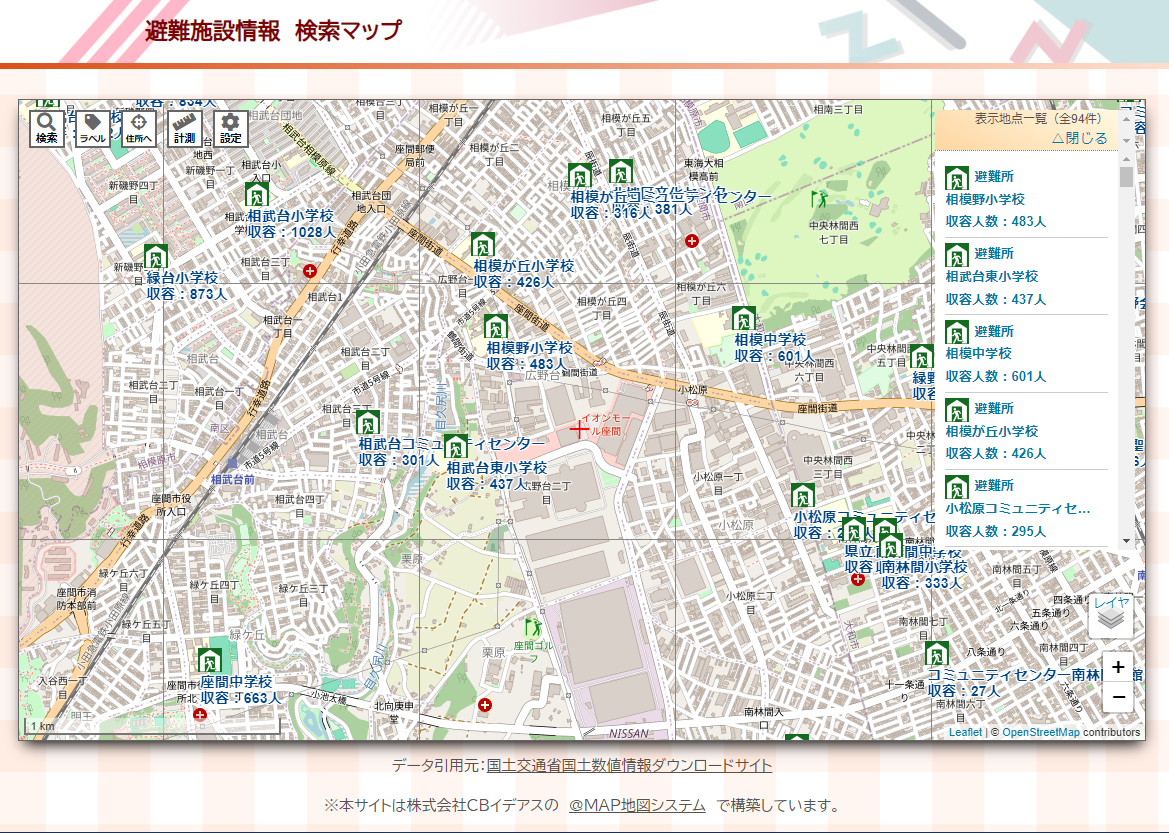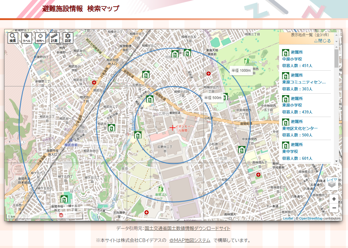 ※データは国土交通省の国土数値情報 避難施設データ(2014年度)をもとに作成しています。