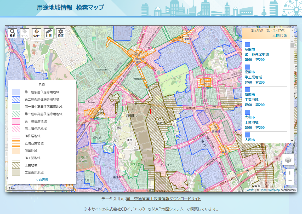 ※データは国土交通省の国土数値情報 用途地域データ(2011年度)をもとに作成しています。
