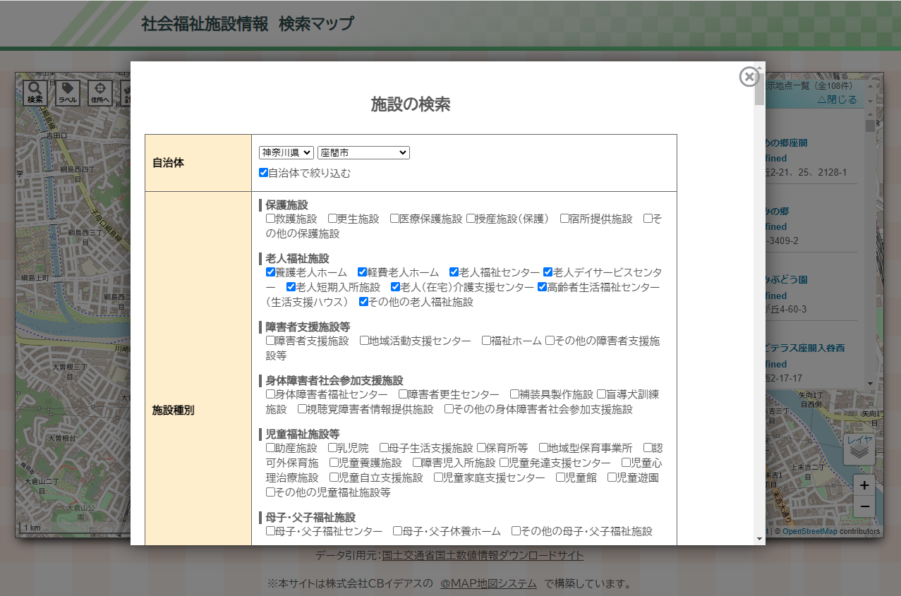 >>サイトを開く - 社会福祉施設情報 検索マップ